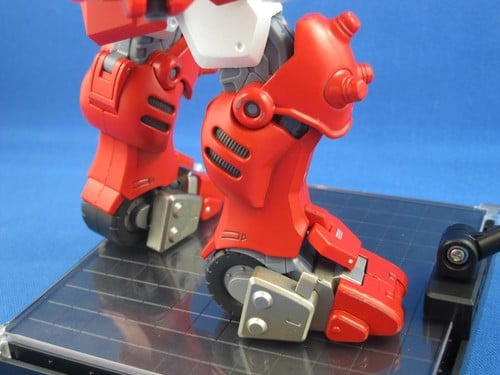 A minor disappointment in this department is that the wheels at the heels-- which in the game allow the player to glide forward like the Scopedogs in VOTOMS do-- don't seem to actually roll. There are also extra fists with fully articulated fingers.