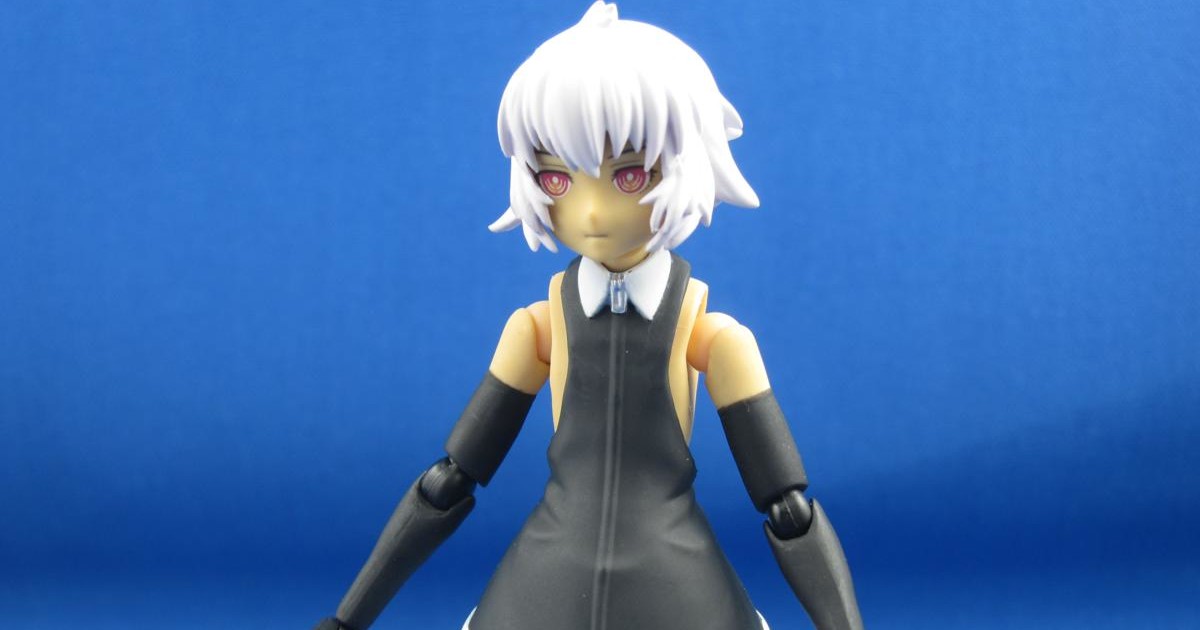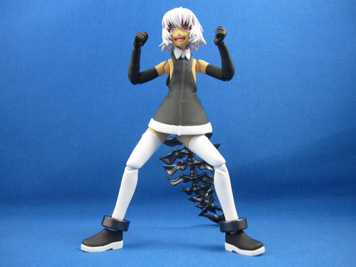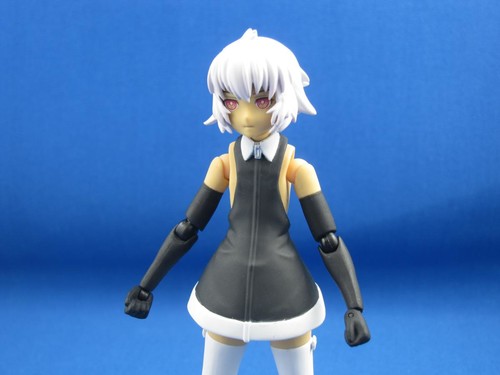 Here's the base figure. Pretty average quality for a figma and tiny, being a schoolgirl in figma scale. The dress is a separate piece of plastic that moves and bends a bit (probably removable altogether, though I wouldn't recommend it), and as such it hides all the joints except for those of the arms and knees.