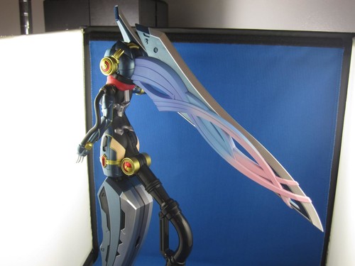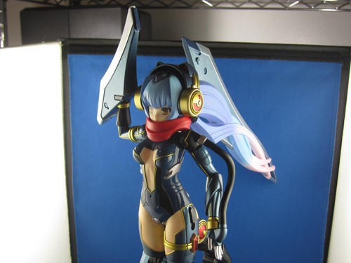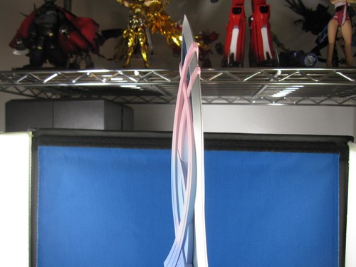 So what the hell is it? Well it's a knife, right? It's a knife made out of a girl. (Of course this is the Aoi we were just talking about.) And yes, it's pretty much too big for our photo setup. Pardon my shelves.