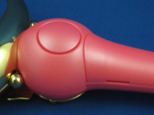 It's tiny (especially in the hands of a big, grown man like myself); the Moon Stick in the anime was indeed that small. A lot of the resemblance to the kids' toy is that the colors are exactly the same. The body is a flat pink, and the gold parts are that exact cheap-looking gold chrome you'd see on a kids' toy. Speaking from previous experience with gold-plated toys, if you do put this on display I would recommend you be very careful touching the gold bits, to avoid that gold surface flaking off over time. This is expecially going to be a problem with the power switch at the bottom, because your fingers will have to make contact with the gold-plated surface.