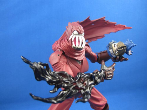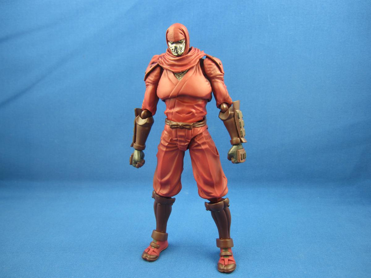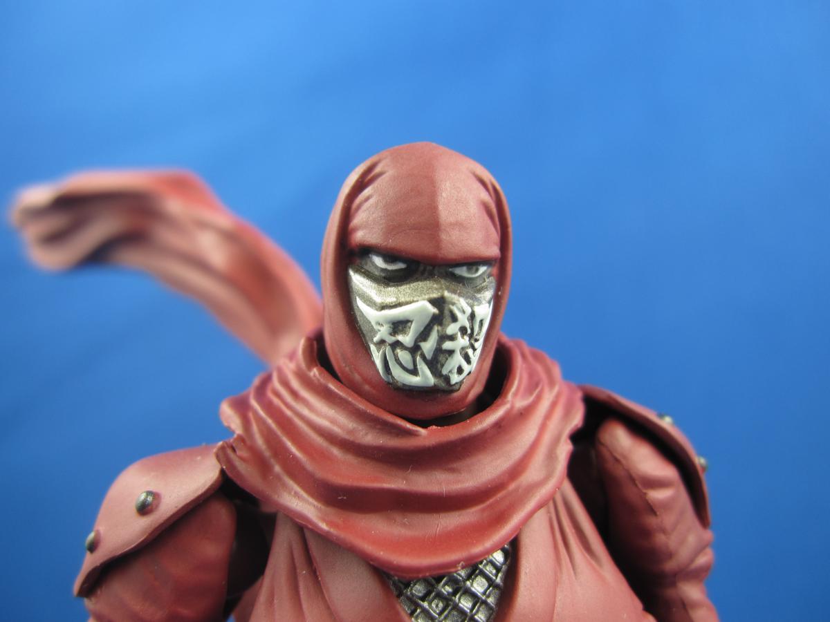 Blood-red Ninja Slayer has a great sculpt. It's in the little details, and especially the “ 忍殺 “ (this is literally the two kanji characters for “ninja” and “kill”, read “ninsatsu”. Which is what you would put on a ninja-killer's mask if you used Google Translate) on the mask. Very crisp. Inga-oho!