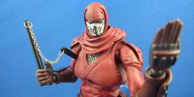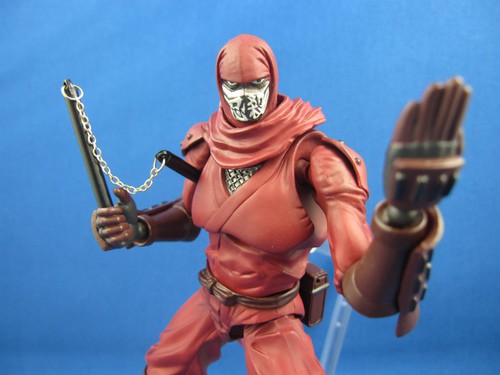 He is also rockin' the nunchucks, because it is historically accurate that ninja had nunchaku, and that it was totally sweet. If there are different types of ninja, Ninja Slayer is certainly the “Real Ultimate Power” type. It's a real chain, but a little flimsy. I must warn you, these nunchaku are made to come apart like a keychain would, and they probably will as you try and set them up. Righting them is a minor accessory surgery, so try and be really careful with this part. After using them once, I didn't want to pull them out again.