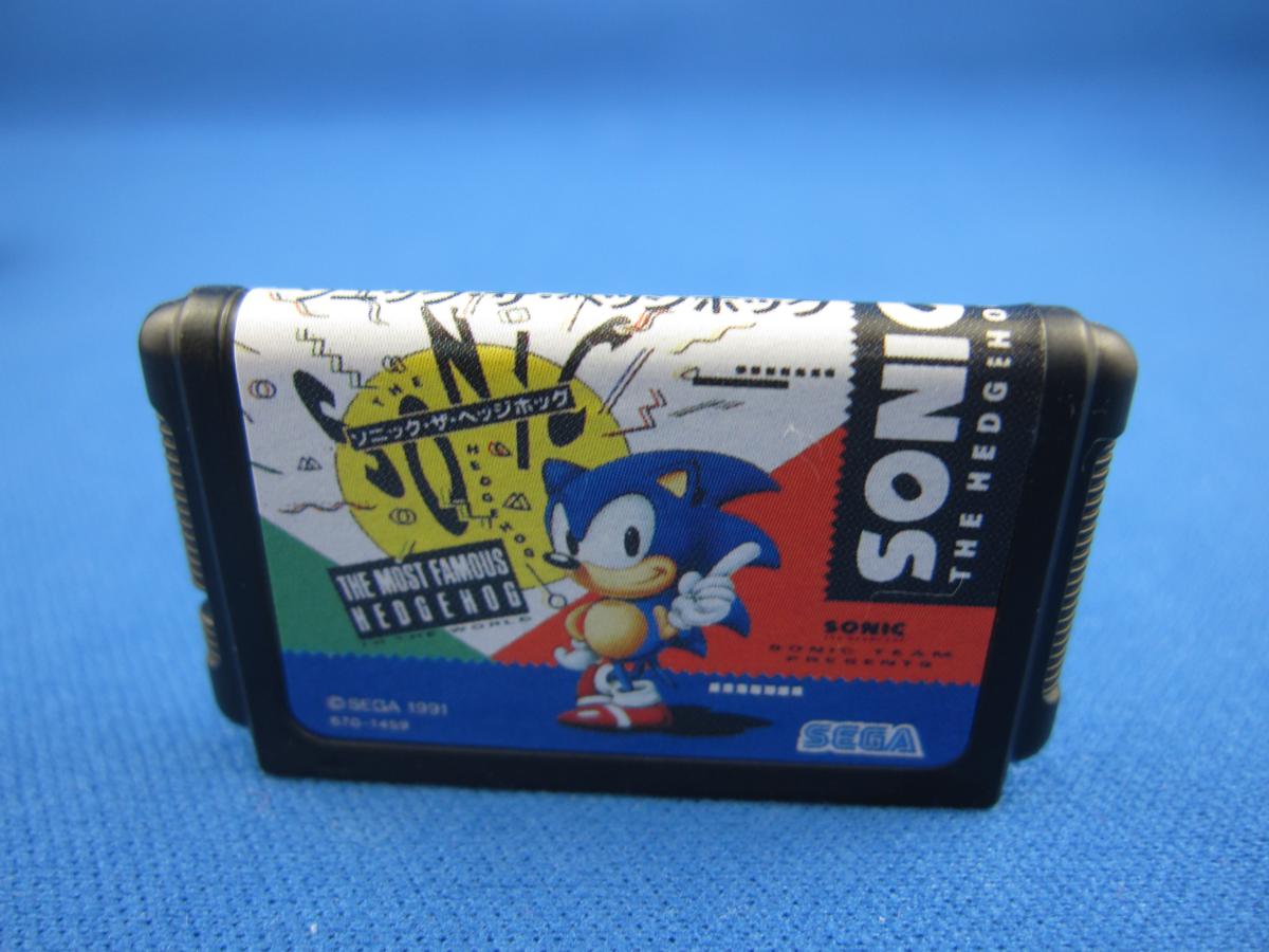 And finally, because it wouldn't be complete otherwise, the Megadrive Megatron comes with a miniature copy of Sonic the Hedgehog. Japanese version, of course: the Japanese Sonic covers all keep the same audaciously tacky theme and I love them. Even the tiny label on this looks amazing: they went so far as to replicate the safety label on the back, too!