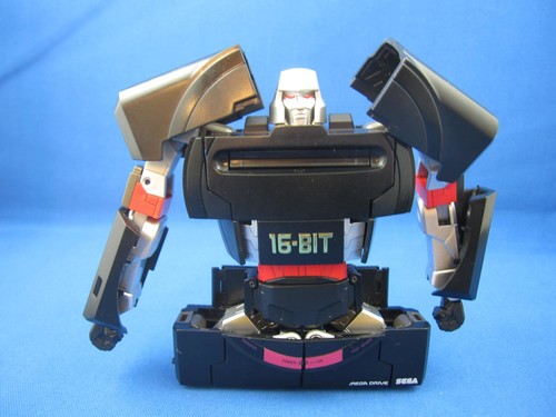 So how the hell did vintage robots and vintage Sega even get mixed up like this? Well, Mega Drive (the Japanese and European name of the console the US called the Genesis) sounds like Megatron. That's seriously it; toy designer Yoda TOMOO, bless him, said “hey, how about Mega Drive Megatron??”, made a phone call, and Sega said “hell yeah, Mega Drive Megatron!” Read more about it in this interview with TOMOO, who thought deeply about this idea and regrets only that his miniature Mega Drive can't connect to a miniature Mega CD. (Soundwave?)
