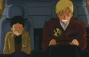 The pictures do wonders for the career of Bernie, a rookie who has now wrecked a suit in his first battle. He's soon transferred into an elite espionage and mercenary division (more as a flunkie than anything else). His new team's mission is to either steal or destroy the new Federation Gundam mobile suit at any cost. Back on the colony, they go undercover as truck drivers. Bernie is spotted immediately by Al, who manages to manipulate every adult in the party into letting him in. "He's my big brother!" he yells, working up tears.