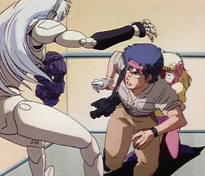As far as anime directors go, I find Hiroyuki Kitakubo is pretty under-rated. Besides being truly talented at kinetic action animation, the guy has a sense of humor. From the edgy satire of Roujin Z to the over-the-top perverted bawdiness of Golden Boy, Kitakubo seems to be one of the more reliable anime directors out there. So for him to co-direct an anime with a young Masamune Shirow? You know it pretty much has to be a good time.