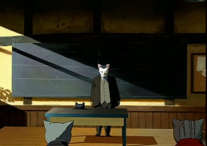 Written and directed by Shōji Kawamori (all of Macross except Macross II) and animated at Sugii's Group TAC studio, Kenji's Spring is an exercise in visual inventiveness. Rather than tell what could have been a very straight-laced story, the idea was to take Miyazawa's unique world view and examine his life through that prism. Taking a page from the earlier film, Kenji, his family and his students are all depicted as cats (though there are a few stray dogs and even a human nurse here and there). His stories are presented as an electrifying montage of experimental animation. As Miyazawa slowly descends into depression and illness, the associated self-deprecating hallucinations are beautifully meditative and poignant.