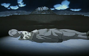 Mind you, the use of CG in anime was in its infancy back in 1994, and some scenes haven't aged very well. Pans and zooms have that too-smooth shot-on-video feel. An early shot that moves the camera around Kenji's classroom reveals that all of the characters are flat cut-outs, like in those old music videos by The Cars. These aren't as noticeable as one might think. Other things, like the gears of time beneath the earth, and the visual depiction of Kenji's physical and emotional breakdown, are still breathtaking all these years later.