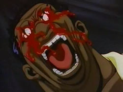The animation in Mad Bull is strictly bottom-of-the-barrel, the sort of cheap and dirty work that was commonplace in early 90s OAVs like this one. Animation is produced by Magic Bus, but a cursory glance over the credits reveals that most of the work was farmed out to Korea and mainland China. The same glance reveals exactly how much care and love went into Manga Video's release of the title: the first two episodes misspell the names of both the dub director and the licensor. By episode 4, they still hadn't corrected the former. I can almost imagine the producer, head-in-hands, sitting with the editor at the online editing suite. "It's fine, I don't care, just throw it in there," he says, not even bothering to look at the monitor. The music has been ripped out, replaced with a thoroughly unexciting hard rock score that sounds like a Metallica cover band was hired to write elevator music.