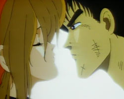 If there's one person that Roots Search touched off the career of, it would be animation director Hiroshi Negishi. Negishi would later go onto create such celebrated works as Amazing Nurse Nanako (a show that played verbal, physical and sexual abuse for laughs), Bounty Dog (an entire OAV consisting of bored people painted green) and Suikoden: Demon Century (a bad fighting game anime that didn't even have a video game license). I think it's safe to say that this film would be a portent of things to come.