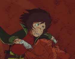 I make no secret of my dislike for Rintarō, the anime director whose visually striking sense of style usually does everything it can to prevent a coherent story from being conveyed. We've seen his style completely destroy his stories' substance over and over again, from the incomprehensible X: The Movie to the muddled and bone-headed Harmagedon. But for some reason his disjointed storytelling works for Leiji Matsumoto yarns, which are themselves highly stylized and easily distracted by pretty things. The sort of discontinuity between visual concepts that has bothered me in nearly every other Rintarō work are strangely effective here, with his sweeping gestures and surreal body language. In the late 70s Toei Animation was at the top of their game, and the workmanship on this film is nothing short of sumptuous. (Later GE999 films are not as lucky in either the story or art departments.)