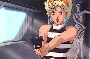 The English dub was produced by Manga Video UK back in 1992 and dubbed in London by the usual stable of Manga UK talent, featuring director Michael Bakewell leading a stable of American expatriates and Brits attempting to fake American accents while reading scripts with resolutely British sentence structure and inflection. I love this stuff, but even I must admit Ben Fairman as Hiro is more than a little milquetoast. Anna Alba is cute as Maggie, while Denica Fairman (best known in the States as the original B-ko) turns up the annoyance on the gratingly naïve reporter Susan Sommers. (One has to snicker at that name.) Overall, the dub misses a few of the more important dramatic moments; one would be better off watching this one subtitled.