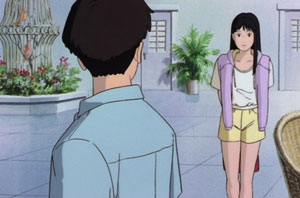For me, anime has the potential to provide an abstraction: an artistic prism that focuses one's attention on the important details of a character and allows us to see deeper into it. We're freed from thoughts like, "this is an actor, I wonder what it was like shooting this film," or worse, "I can tell this is fake. The sets/acting/etc are so cheesy." What's more, Ocean Waves feels more like a Japanese live action art house movie, a la Shunji Iwai or Hirokazu Kore-eda, than an anime. It has that sense of cinema verité, a feeling of day-to-day intimacy well beyond what even some of the best anime provides.