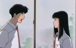 Having anime and Japanese style cinema verité together doesn't happen very often, and when it does it often goes very wrong. (Too easily, such anime become indescribably boring.) But this doesn't happen in Ocean Waves, and that's thanks entirely to its characters. Taku is interesting not because he's special (in fact, we get the feeling that beyond being a good student, he's quite ordinary), but because he's so realistic. We see not only ourselves in him, but a reflection of daily life well beyond what we're used to seeing not only in anime, but in any filmed entertainment. Rikako is less ordinary; almost a proto-Haruhi Suzumiya. She's a touch narcissistic, self-absorbed and oblivious to the needs and thoughts of others. And that, to Taku, is fascinating. It's hard to not appreciate how the two personalities play off against each other.