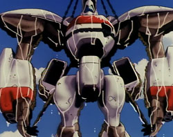But beyond all the action and suspense, there's an inherent sadness to Orguss 02, a maturity that was missing in the original. Where the old TV series seemed almost gleeful in its depiction of war, Orguss 02 has a sense of inevitability and regret. Lean really has no desire to be in a war, and it's hard to think of any of the participants in the battles -- even Lt. Manning -- as anything other than the pawns of an abusive political structure. Though Zafran has echoes of Germany, there is little to suggest that there is any more significant wrongdoing on their side than there is on the Revillia side. By the midway point of the series, Lean has lost interest in fighting, if he had any to begin with. He must simply get back home.
