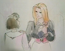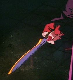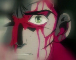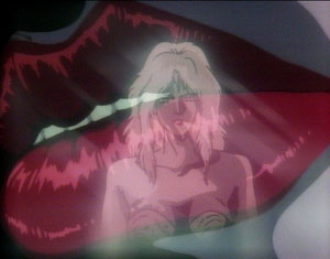 But the songs are in English, and it's unlikely that the editors paid much attention to the lyrics when they made these videos. This led to some bizarre juxtaposition between footage and music, such as a drippy ballad ("I Need Your Love") played to shots of Iris staring at a woman, followed by a shot of a prostitute getting carved out like a turkey. But the strangest combination had to be the haunting "Love Me Tonight," a desperate and lonely anthem, played out to The Phantom Woman. It puts the story in a whole new light, from the Boomer's point of view, and it's at once horrifying and compelling: one of my most indelible anime memories involves Bonnevie's husky voice crooning "Where is the light/I need to see you/In your arms/I need to touch you" while seeing a sexroid boomer in lingerie getting shot repeatedly.