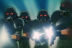Sex is a common theme in A.D. Police, but it's hardly the enjoyable kind. As is often the case in the future, everyone's pretty depressed, and sex, like booze and drugs, are a way to mop up their unfulfilled needs at the end of the day. That approach pretty much sums up the whole feel of the series: there's no hint of the wide-eyed gawking at cityscapes that one normally gets from cyberpunk, itself a descendant of film noir. Rather, it prefers to marinate among the rats, the homeless, the clinically unhappy. After all, it's a police story, and the job of a police officer is often to deal with humanity at its worst, its most desperate.