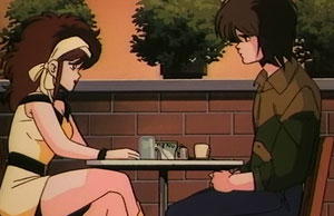 The film is short, and so like short fiction, the film suffers from a lack of back story and character development, but ultimately its short running time lends it an immediacy, like a comedy sketch that doesn't overstay its welcome. The animation, while technically decent, has aged incredibly due to its strict adherence to mid-80s fashion (which looks extremely similar to the original Megazone 23). The characters, designed by Kumiko Takahashi, have that huge-eyed cherubic look common to the era. Nobody will ever mistake Call Me Tonight for being anything but a product of the 80s.