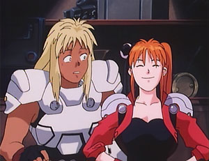 Episodes two and three change out both directors and other staff; the characters look almost entirely different and the show itself feels like it's been downgraded to the "B-team". New directors Masayuki Oozeki (ep2) and Hideaki Oba (ep3) continue on the show's paint-by-numbers course towards its eventual battles and romance between Ital and Sahari. They re-use the same background music tracks, failing to inject any excitement into the proceedings, or even the slightest bit of doubt into how things will turn out. Even more than episode 1, the second two parts just sort of lay there, seemingly exhausted by the weight of their own cliché. Part two has the team fighting a dragon and discovering an "Elf" named Sakuya (a.k.a. mysterious plot point girl found sleeping naked in a pod), and part three has an evil General kidnapping her in an attempt to take over/destroy the world.