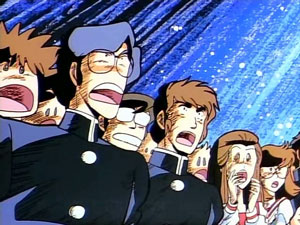 But really, Blazing Transfer Student is about as much about boxing as Naruto is about historically-accurate ninjas. Animated with intentionally thick lines and a jerky animation style (trying to make it look, you know, 70s), and populated by characters who yell a lot and take themselves ridiculously seriously, the series definitely covers ground that has since been parodied quite a bit, in everything from Di Gi Charat to Gainax's own Gurren Lagann. But its sense of style and fun is something unique.