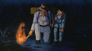 All of this is punctuated by the sort of hilarious jingoism you'd normally hear on a playground. Wataru needlessly proclaims his ethnicity at every opportunity ("I'm not scared! I'm Japanese!") and the rest of the cast is sure to be really impressed every time. ("Wow, Japanese? You must be strong!") A few minutes after we meet Wataru as a teenager, he meets a pretty blonde-haired blue-eyed jungle girl, clutching a spear and ready to attack him. "I'm Wataru," he introduces himself. "I'm not a suspicious person at all!" She puts down her spear and dances in delight.