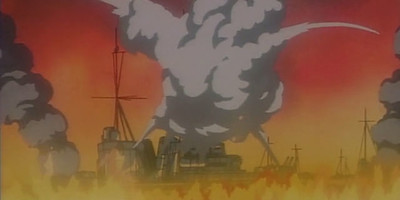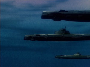 The character design looks an awful lot like it passed through Yasuomi Umetsu's hands, or perhaps had some Kia Asamiya influence, but neither name graces the painstakingly translated bilingual credit roll. (The English titles are riddled with spelling errors, of course.) Character designs and animation direction is credited to Katsumi Matsuda, whose credits also include Legend of Crystania, Steamboy, and more recently with Umetsu himself on Wizard Barristers. The rest of the artwork is decent but unremarkable for its era, with lots of watercolor backgrounds and thick-lined warships that look painstakingly rendered, but are nonetheless dull to look at. Direction duties are handled by Mamoru Kanbe, who made a few other lame OAVs but has put out better-known works recently, such as Elfen Lied, Sound of the Sky and You and Me.