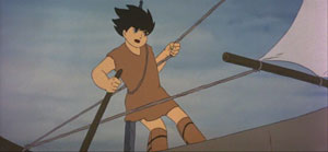 As a production, Toei afforded these young animators a very democratic production process, with nearly everybody on staff having the ability to contribute ideas towards the final product. Some, including a young Hayao Miyazaki, really rose to the occasion. Takahata himself was also a relative newcomer; at 32 he had proven himself a few years earlier on the TV series Wolf Boy Ken, which won him enough respect to direct the film, but not enough to win many creative battles with the studio. The original setting, among Japan's indigenous Ainu people, was changed to Scandinavia, and its running time shortened by over a half hour.