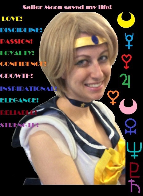 In high school I got very sick and never got better until I was told that it was a permanent condition I would have to deal with for all of my life. Sailor Moon really helped me through this. She's a warrior and a princess even though she's imperfect. I love her so much. Whenever I go to an anime convention in a Sailor Scout cosplay I get a day where I'm not sick and in pain, but where I'm a warrior. My Sailor Moon cosplay is what keeps me going when I'm at my worst.
