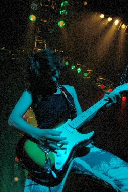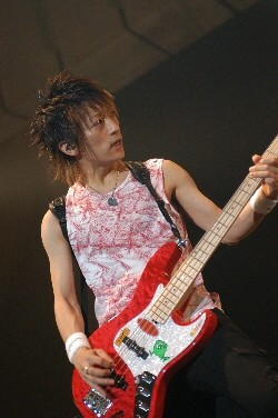 hyde wasn't the only one talking to the audience though, bass guitarist tetsu decided to give something to the audience. He asked them, “Do you want my bananas?” Apparently a fan of bananas, tetsu has performed a similar stunt at Japanese concerts where he whips a single banana out of his pants and throws it into the audience. Not familiar with the gag, and certainly not understanding his question, the Baltimore audience was at first silent, but erupted in laughter when tetsu brought from behind his back not one banana, but a whole batch of them and started throwing them into the audience.