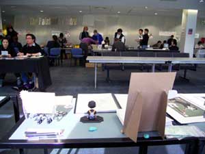 Maybe the best way to spend one's time was to go back down to the second level of the building to sit in on round tables and drawing classes. Manifest's cel-painting room proved to be quite popular ? and delightfully messy ? taking up a good chunk of the afternoon. Next door people had their egos lifted and crushed into tiny quivering pieces at Q & A sessions with names like "Please Tell Me Why My Comic Sucks" or "Even You Can Make Comics!" Nearby were classes for both advanced artists and those struggling with the dynamics and proportions of stick figures. These were hosted by artists who generally kept things simple and easy to understand; it was easy to tell why some schools had hired them to show the chibis how to draw "those funny Chinese cartoons".
