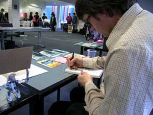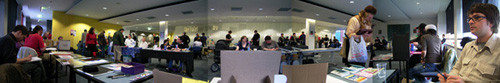 Let's face it, when people weren't busy picking up new skills they were either emptying their wallets or scoping out the competition up in the artists' area. This was divided up into sections for manga artists, general cartoonists, animators and those selling adult art. Around forty artists had registered a spot for their work, and this main art section attracted the most people by far. The flow seemed to be evenly spread throughout the section except for the 18+ section, which was pushed away in the rear (*ahem*). The doodling area usually attracts people, so it was understandable that someone may have thought putting it near these 'special' artists would have generated more interest, however a lot of the time both areas seemed rather barren.