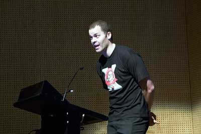 Crispin Freeman, best known for his role as Alucard in the dub of Hellsing, expressed his joy over attending a conference rather than a con for once. He lamented the fact that he would be missing the Tezuka exhibition by mere days. A montage of his work was screened, followed by a spine tingling preview for the new Hellsing Ultimate OAVs which showcased all the original dub actors. It was then announced that the OVAs would be released on DVD in Australia come April next year.