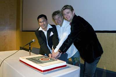 Once the movie was finished, an over sized birthday cake with an incredibly artistic version of the Madman logo rendered in icing was rolled on stage. Sylvester, Vic and Crispin stabbed the diabetic's nightmare as the audience crooned out Happy Birthday.