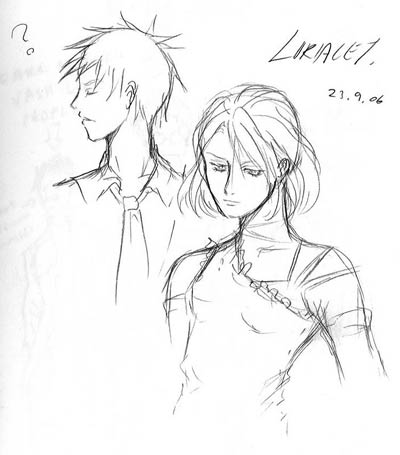 The following sketch was done by an artist known as H.Pop, something I only realized when I was scanning in these sketches. He could not draw on the spot so I was forced to find a random attendee for him to sketch. Unfortunately one of my friends from Perth stood still for enough time for H.Pop to create the following. He may not be a random stranger but it worked out in the end.
