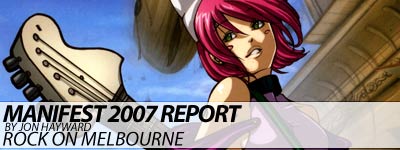 Internally the hall was tiny compared with last year, and there was no pulling back into the middle of each “corridor” for a quick breather, so you just had to go with the flow. Combined with Melbournite's apparent lack of manners (i.e no-one moving aside a little so other people can get a look) you needed constitution and a little bit of shoving to get through the entire hall. Traders included Madman Entertainment who had the majority of DVD's and Manga available at the convention. Plastic Figurines and Kits, Plushies and general trinkets were supplied by a range of traders including Anime Anytime, Ozanimart, Tamarket and Anime Zone. All up there were about a dozen traders in total, however they were all placed on one side. As you can imagine this left the other side looking very empty. Speaking of the other traders we had Animavericks, a trader selling indie style t-shirts, Manga Arts, but sadly nothing too fantastic. The only item that wasn't really available was Manga. Why don't traders bring manga to conventions? The fans are hungry for manga sold at cheap prices. It can be done, Anime Anytime proved this last year. I do personally understand why traders dislike bringing manga, it's physically heavy and it can hard to find the right selection to sell. Madman does have a selection of Manga titles but it's currently limited. If you consider that Manga and Anime are the two main mediums that are the reason why conventions like Manifest exist, it's a little sad to see so little Manga presence in the traders' hall.