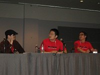After an additional screening of the Black Lagoon: Roberta's Blood Trail 3rd season OVA, a brief recap of the series was shown before Black Lagoon manga creator Rei Hiroe, manga editor Akinobu Natsume, and anime producer Ogura Mitsutoshi (of Geneon Universal) were introduced.