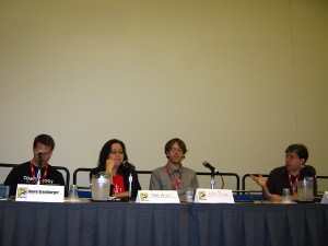 Comics critic and Techland writer Douglas Wolk moderated a panel featuring Comixology CEO David Steinberger, manga editor and creator Jake Forbes, and manga.about.com's Deb Aoki, to discuss the past, present, and future of comics piracy.