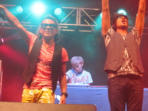 Micro had been tweeting in both English and Japanese this whole week in preparation for this concert, and so for the song "Manatsu no Dance Call," anyone who read his Twitter account knew that it was time to take out your hand towels and spin them to the song. At the end of the song, Micro and Kuro threw their own hand towels into the audience. Before the next song, Micro had something to say to the audience: "You guys are ------ awesome man!" He added that the name Home Made Kazoku comes from their belief that no matter who you are, where you live, or the color of your skin, that we're all one big family. They then sang the touching "Salvia no Tsubomi," a song about a child on the cusp of becoming an adult, remembering his parents' scolding fondly and recognizing the mannerisms he's acquired from both his parents.