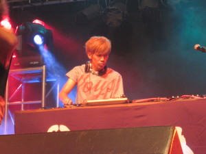 Home Made Kazoku, made up of MCs Micro and Kuro, and DJ U-ICHI, played a 90 minute concert on Sunday afternoon to a packed house. The energy was through the roof throughout the performance, due as much to the upbeat melodies of each song as the charisma of Micro and Kuro, who displayed undying energy and great chemistry on stage. After a short hip-hop introduction, the duo launched right into "Shounen Heart," the second opening theme song for Eureka Seven. The audience erupted in applause and screams. Proving that they're not just a hip-hop group, next the band sang their Japanese cover of the 1979 Sister Sledge disco song "We Are Family."
