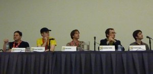 What was supposed to be a panel about translating manga ended up being a roundtable on the state of manga publishing in general. Involved in the discussion was a group of freelancers and editors including Mark Simmons, Jason Thompson, Jake Forbes, Jonathan Tarbox, Stephen Paul, Shaenon Garrity, and William Flanagan. The panel began immediately with audience questions, which started out on the relatively benign subject of the Gundam franchise (a specialty of Mark Simmons). On the subject of Gundam's future in America, Simmons's opinions were mixed; he felt that the acquisition of Gundam Unicorn was a sign of hope for the series' UC continuity but the possible success of any other Gundam properties is anyone's guess..