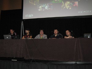 Next the three panelists asked the audience questions: Ochikoshi asked how fans in the U.S. watch anime, and commented on the decrease in anime sales. One fan responded that the DVD investment might be too much for some since fans can't watch them on television.
