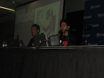 Then the two began the Q&A. Of note: Madoka Magica will be dubbed. Aniplex has no plans to release the original Rurouni Kenshin television series, but are in negotiations to bring over the new Rurouni Kenshin project in development. They are also in negotiations for releasing Welcome to THE SPACE SHOW on Blu-ray. The two then thanked the fans for coming out, and asked them to enjoy Otakon and check out their other events.