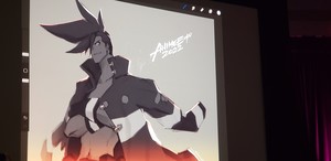 Things were a little different this year for Trigger's live drawing panel. Shigeto Koyama, Yoh Yoshinari, and Hiromi Wakabayashi still brought their usual off-the-cuff energy and untucked energy, but the crowd was less...intense. In years past, a Trigger panel meant full ballroom seating, Trigger bucks tossed to the crowd (discontinued this year thanks to weakened yen, according to Wakabayashi), and cheering from the crowd. We might still see that tomorrow at the 10th anniversary panel, but the live drawing felt dimmer than previous iterations.