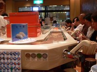 Kaiten sushi is a great way to sample many kinds of sushi on a small budget, especially for those who don't really know Japanese. Known as conveyor belt sushi in English-speaking countries, these restaurants are laid out such that the sushi chefs are preparing the dishes in a central island. When they're done, they place the items onto conveyor belts that snake around the shop. When you see a dish that you want, you take it off the belt.