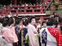 Another ritual that visitors to Senso-ji can do is burn sticks of incense. While these are burning, patrons reach for the smoke that arises—rubbing it on your face will give you beauty, rubbing it on your head will give you knowledge, and so forth. And of course, you can always go into the temple (after purifying yourself with water in a fountain nearby), make an offering, and pray.