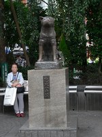 Step out of Shibuya station and the first thing you'll see is Hachiko, a statue of a dog. Legend has it, this dog used to come to the station every day to wait for his master. One day, his master died, but the dog continued to go to the station each evening. In his memoriam, this statue was made. Now it's a very popular meeting spot, and you'll often hear girls say on their cell phones, “Hachiko's too crowded; let's meet somewhere else.”