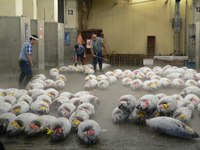 One thing that's definitely worth checking out are the tuna auctions. Visitors aren't allowed to walk through the action anymore, but there's a small area roped off along the side for people to stand and take pictures. Giant tunas are arranged on the ground, and each one is auctioned off quickly and efficiently.