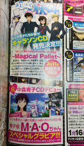 This year's seventh issue of Shogakukan's Shonen Sunday magazine is announcing on Wednesday that a character song CD based on the Magic Kaito 1412 television anime, titled Magical Pallet, will ship on March 11.
