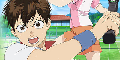 The Baby Steps television anime is an adaptation of Hikaru Katsuki's manga of the same name, which revolves around Eiichirō "Ei-chan" Maruo, a punctual and earnest boy who has strived for straight As since elementary school. The 15-year-old high school boy stops by a tennis school to deal with his lack of exercise. There, he meets Natsu Takasaki, a beautiful, earnest girl who only has passion for tennis.