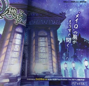 Game developer Compile Heart's countdown website and this week's issue of Dengeki PlayStation magazine are revealing the company's latest game title is MeiQ no Chika ni Shisu: A Maze to Eradicate Them All and includes the tagline, "MeiQ's door will open soon!" The game is part of Compile Heart's Makai Ichibankan brand, The brand also includes the upcoming Makai Shin Trillion PlayStation Vita role-playing game.